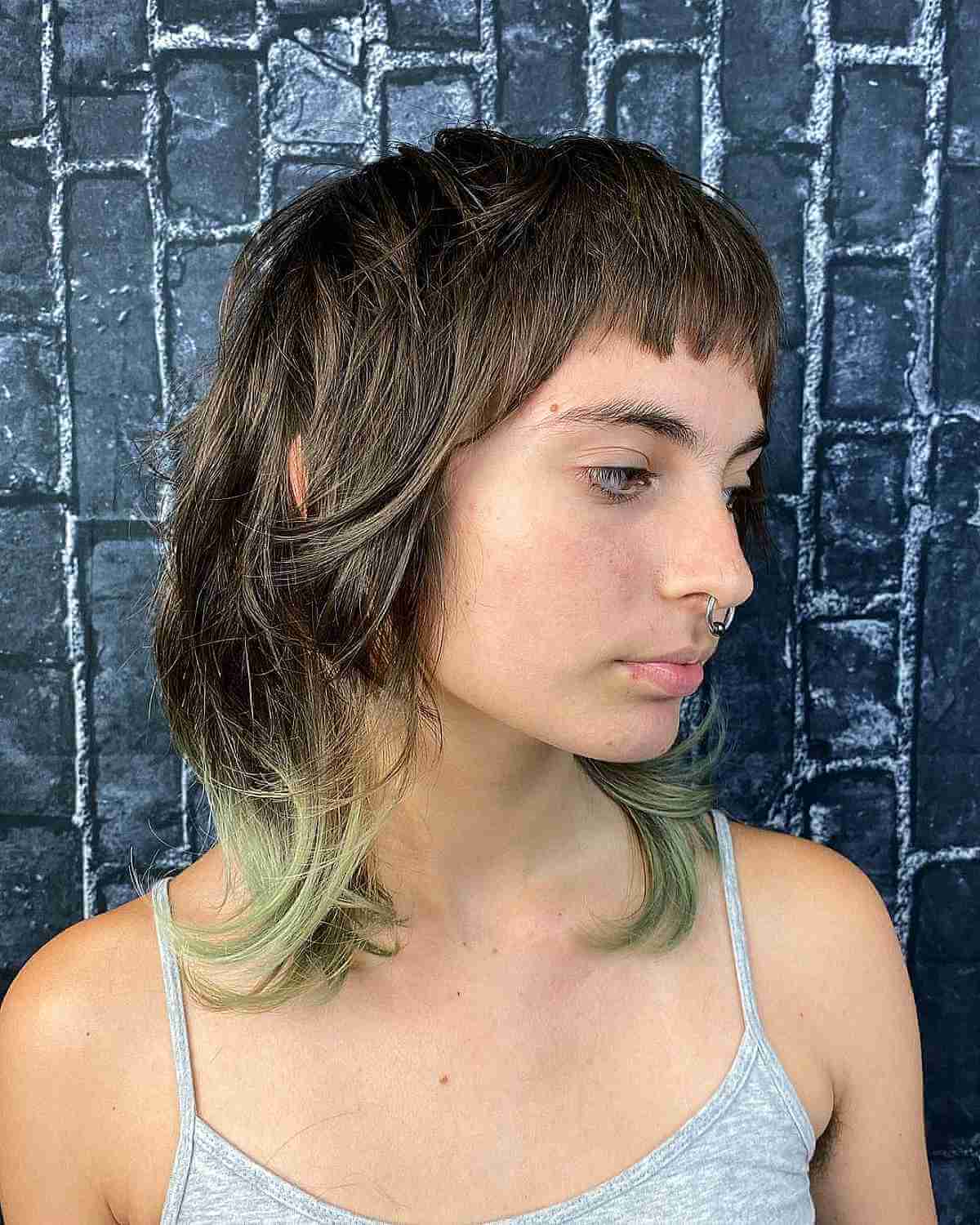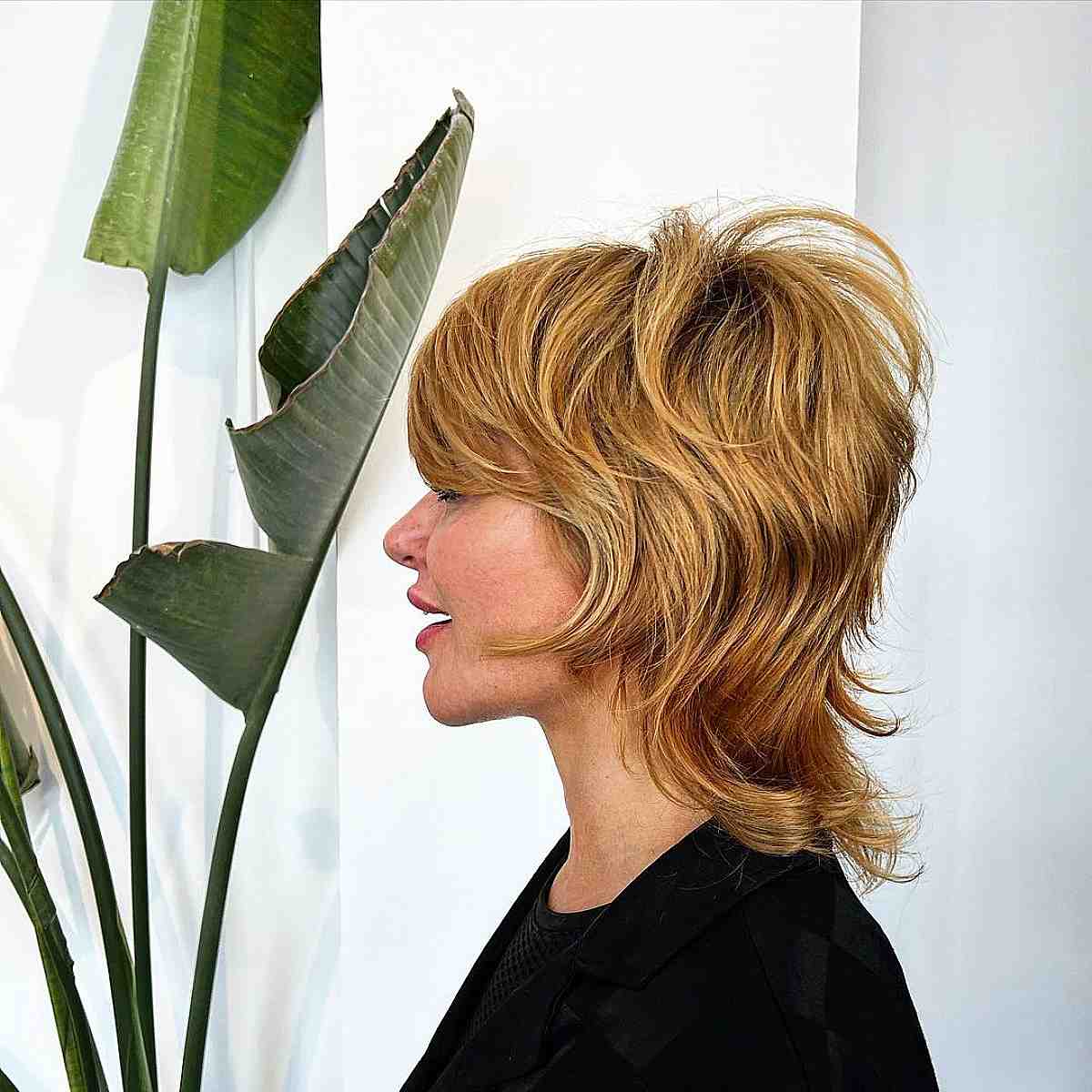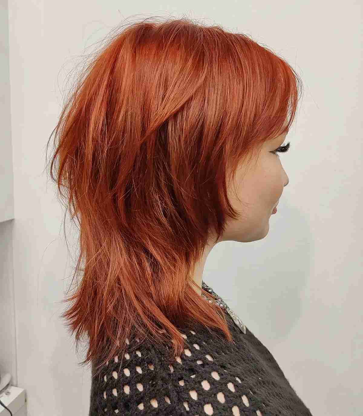 A shaggy mullet will make a statement. Rich golden hues are a classic option that enhances your features if you have warm yellow or red skin undertones. To achieve added volume in your copper mullet, consider requesting short layers on the top and crown of your head.