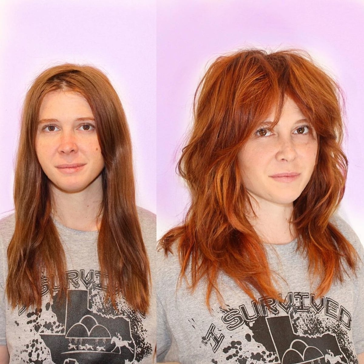 Embrace a striking look with copper red on a disconnected wolf cut. Short layers at the crown will provide the ideal amount of volume and body for a fuller-looking style. A wolf cut is the quintessential on-trend cut that will add texture to your hair and the edgy appearance you’ve been seeking.