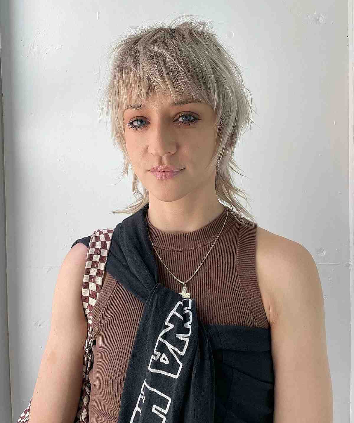 Dynamic Platinum Blonde on a Baby Mullet Shag