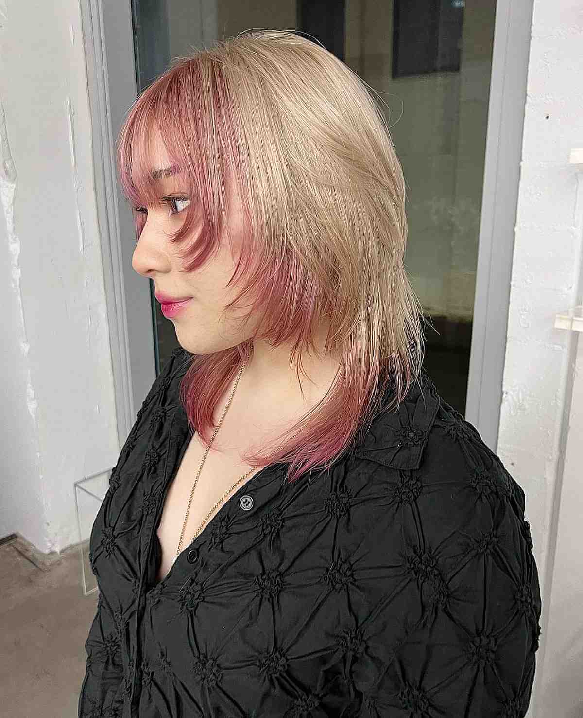 This two-tone layered wolf cut with dip dye ranks among the trendiest edgy hairstyles. Ideal for medium to fine hair, the addition of stylish layers brings a wonderful texture. A cut that feels both soft and piecey creates the ultimate wolf cut.