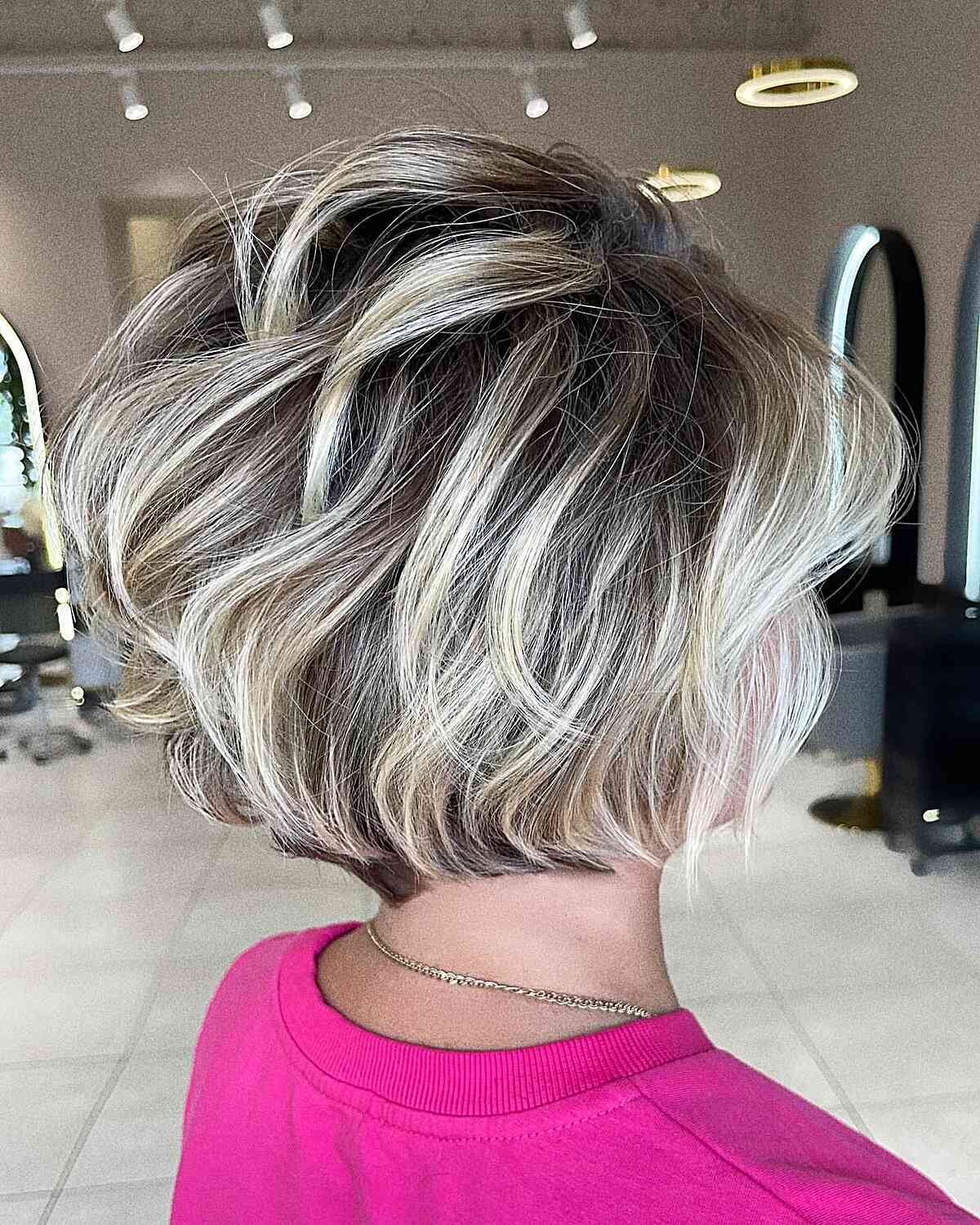 #4: Chic Ice Blonde Balayage Highlights on a Soft Wavy Bob