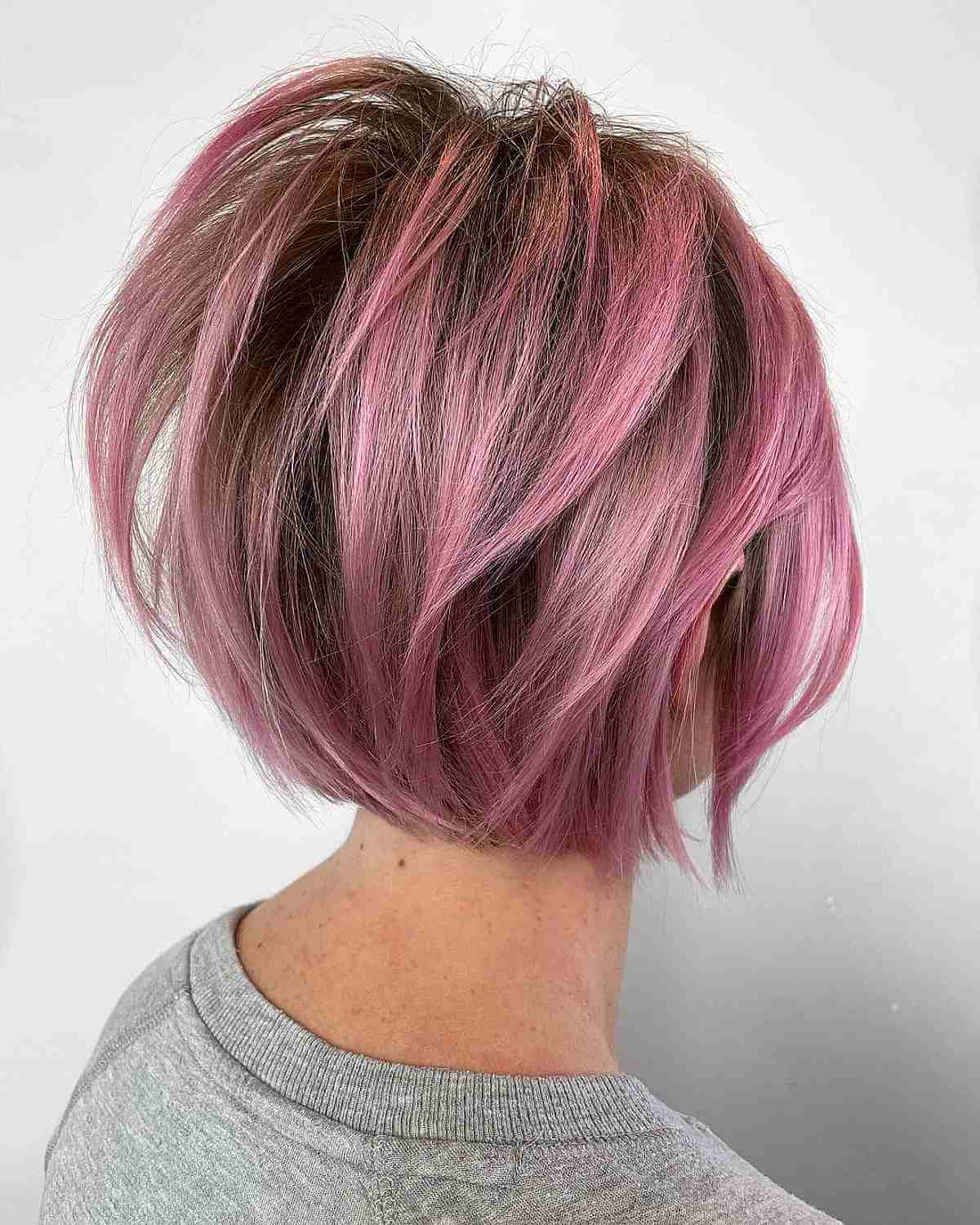 Embrace a pink balayage on your short hairstyle for a stylish and playful look. A vibrant shade of pink will beautifully blend with blonde hues as it transitions, ensuring you look fabulous at every stage. Keep in mind that a soft pink hue will only be visible on very light blonde hair, so be ready for an extended blonde treatment.