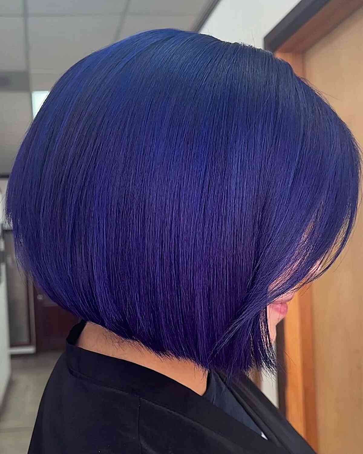 What could be more striking and trendy than an A-line cut adorned with an amazing blue balayage on natural jet-black hair? This short balayage hair color captivates your senses with its charm and individuality.