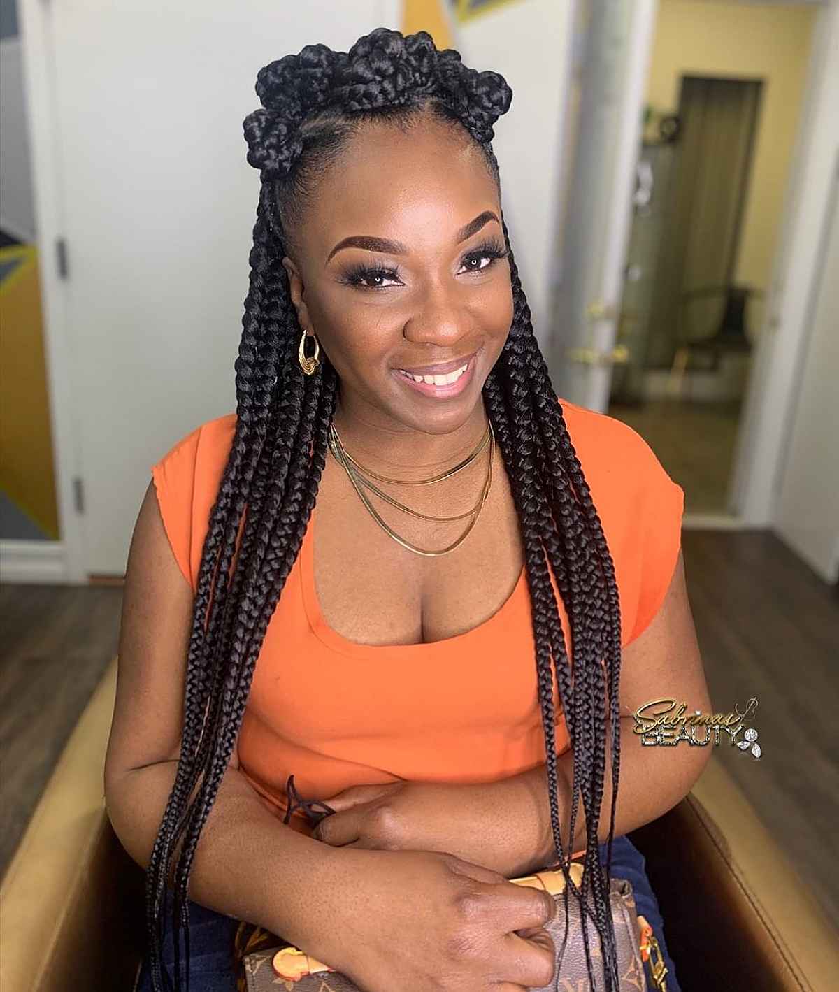#9: Half-Up Box Braids Featuring Bantu Knots