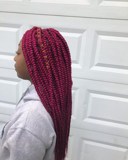 Burgundy box braid styles offer a trendy approach to both protect and style your hair. These Rihanna-inspired red box braids are ideal for the summer season (and beyond!)
