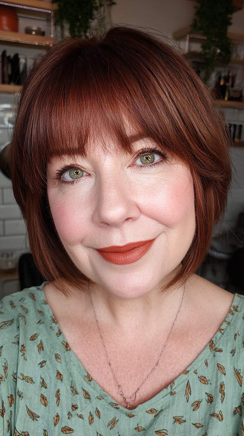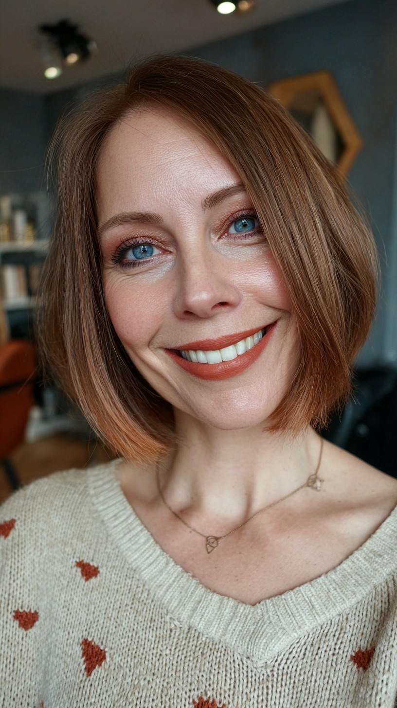 #19 Copper-Toned Layered Bob with Soft Fringe