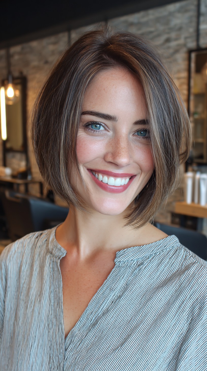 #18 Sleek Ash-Brown Bob with Texturized Edges