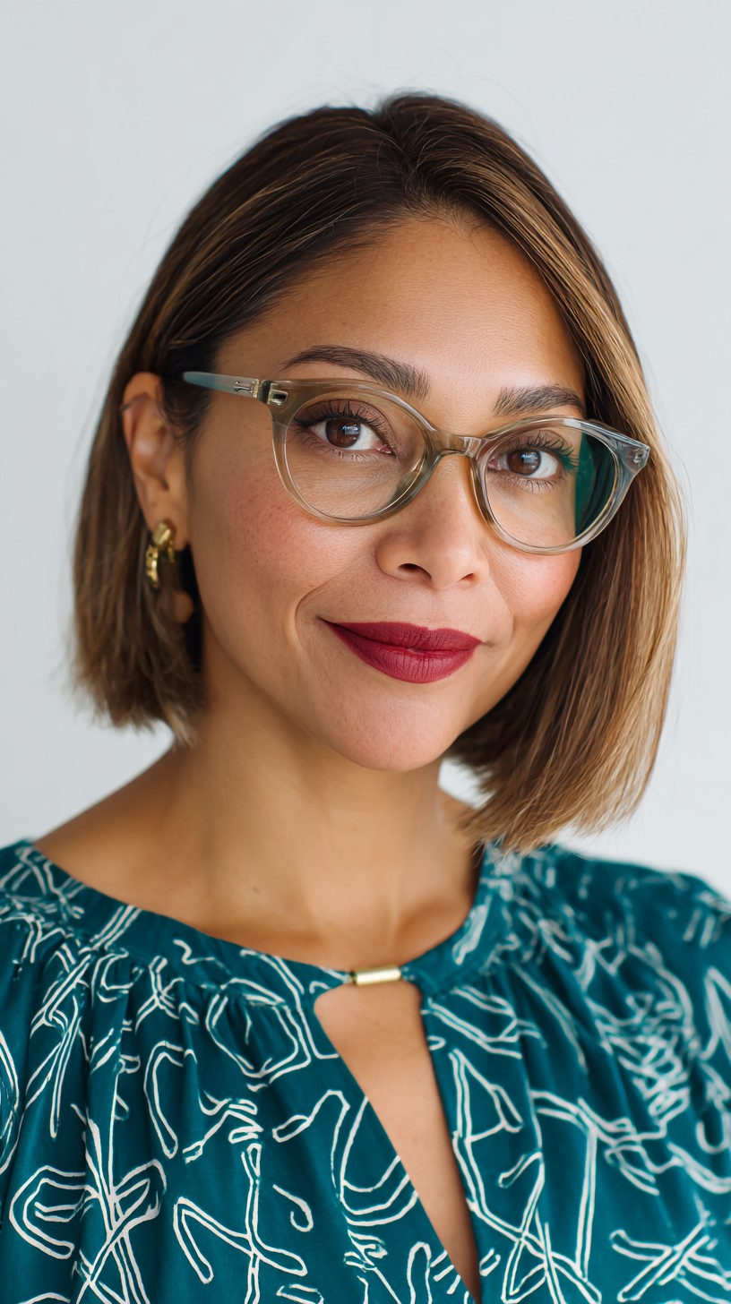 This deep espresso bob is cut to chin-length, featuring a sharp, clean line that creates a sophisticated frame around the face. Ideal for fine to medium hair, this style enhances natural volume, especially with subtle layering at the back. The mild highlights add a gentle contrast, brightening the face without overpowering the style. This cut is fantastic for those looking to maintain a professional yet modern look. However, the precise length requires regular salon visits to keep it looking crisp. Perfect for oval and heart-shaped faces, it gives an instant lift and elegance to your style.