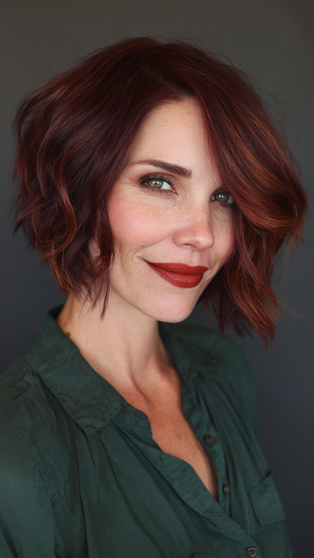 #11 Dynamic Auburn Textured Bob with Soft Waves