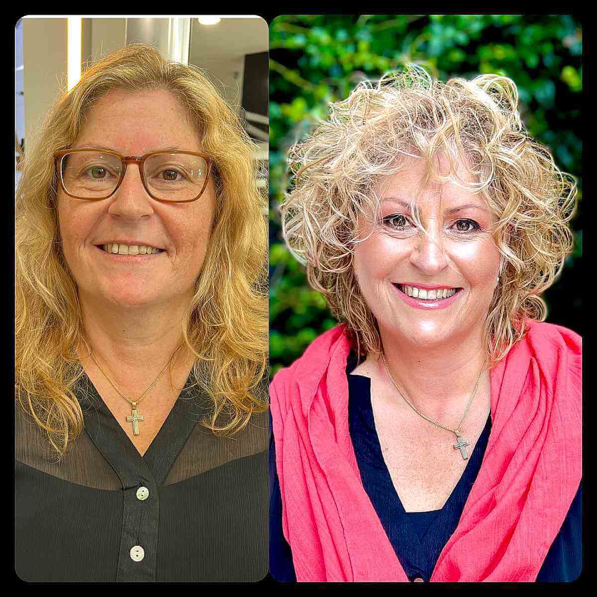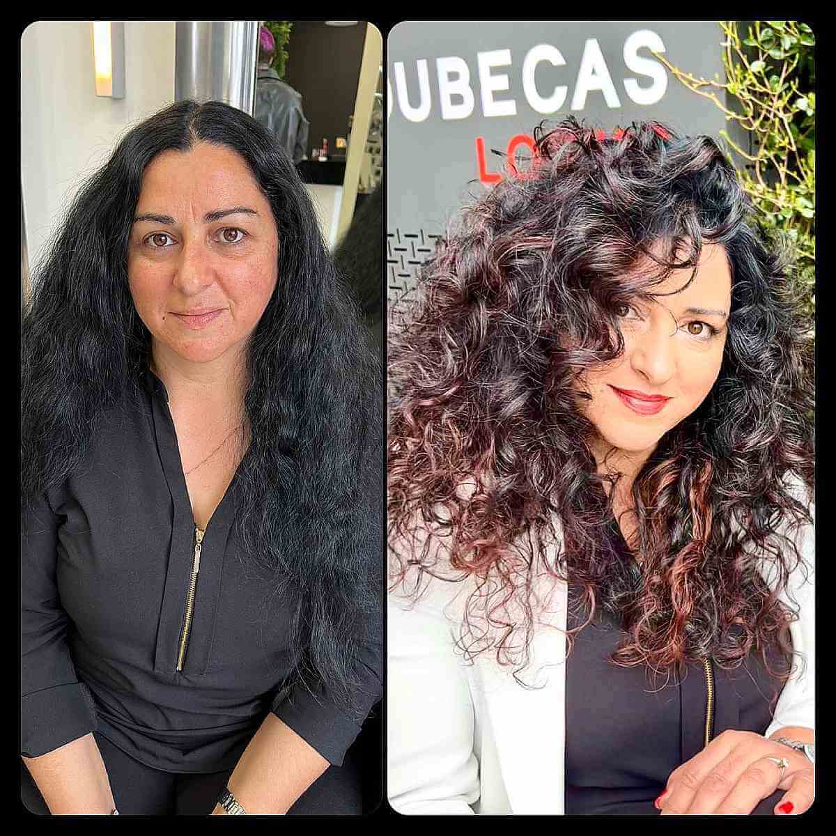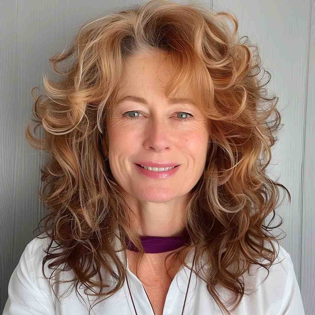 Textured curly hair for mature women is a stylish option. Especially for those with fine hair as it creates an illusion of thicker, more voluminous curls. A dry haircut allows your curls to fall naturally. Consult your stylist to shape your curls according to what suits you best.