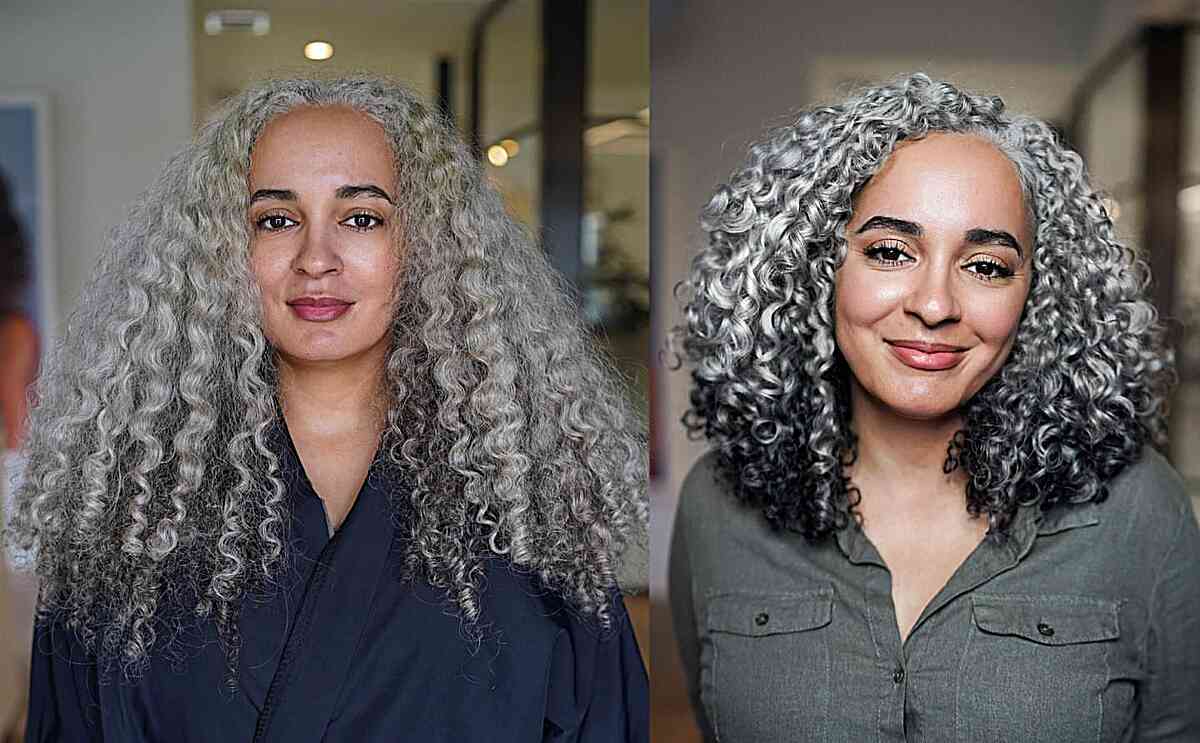 Ombre curls from silver to black will enhance your appearance, giving you a youthful look with minimal upkeep. If your hair is long, I recommend getting a trim before your color service to achieve the ideal placement. To create the curly ombré color, a dark shade will be applied underneath, helping you look years younger. Opt for a lob at shoulder length with longer layers for a style that you can let air dry effortlessly.