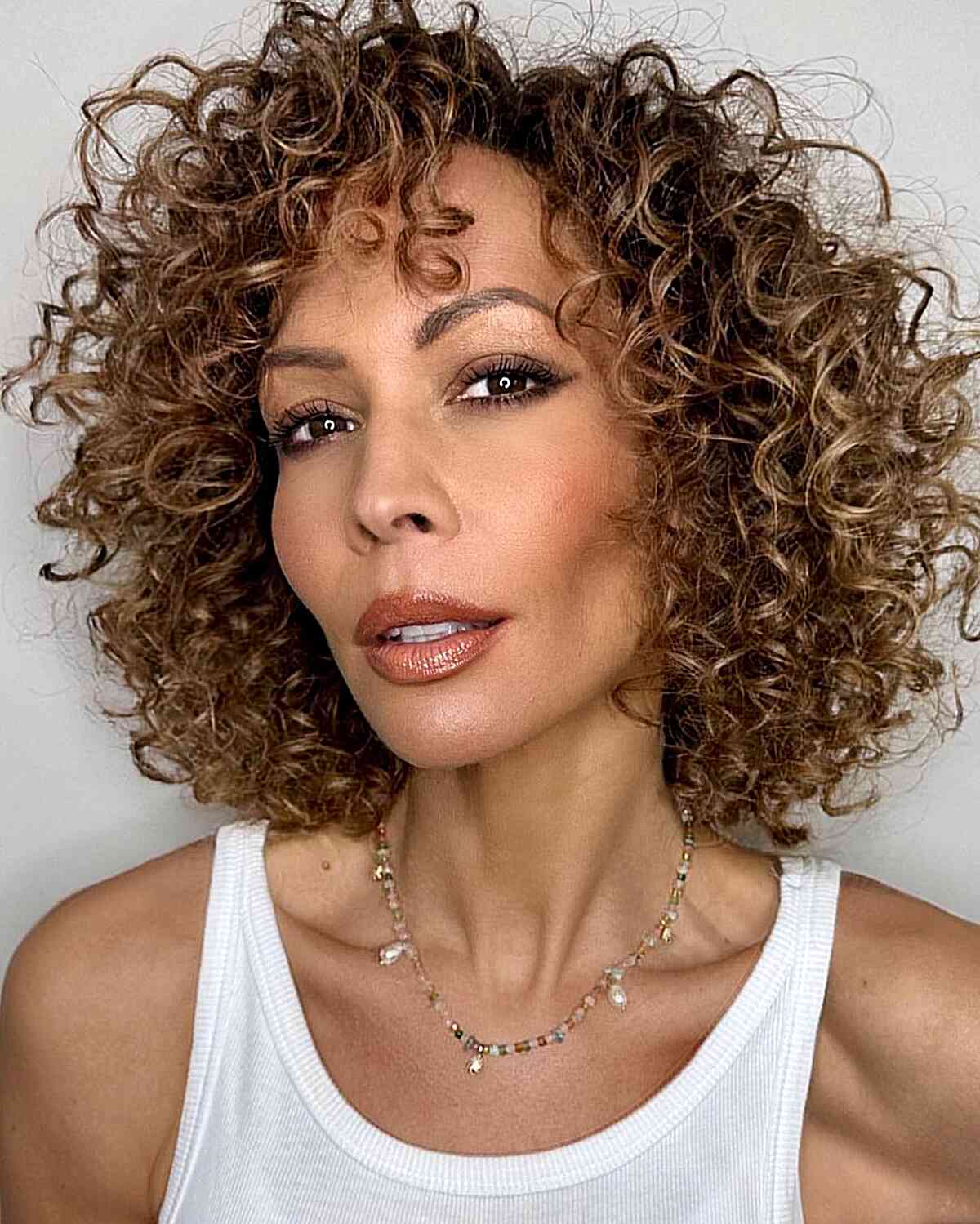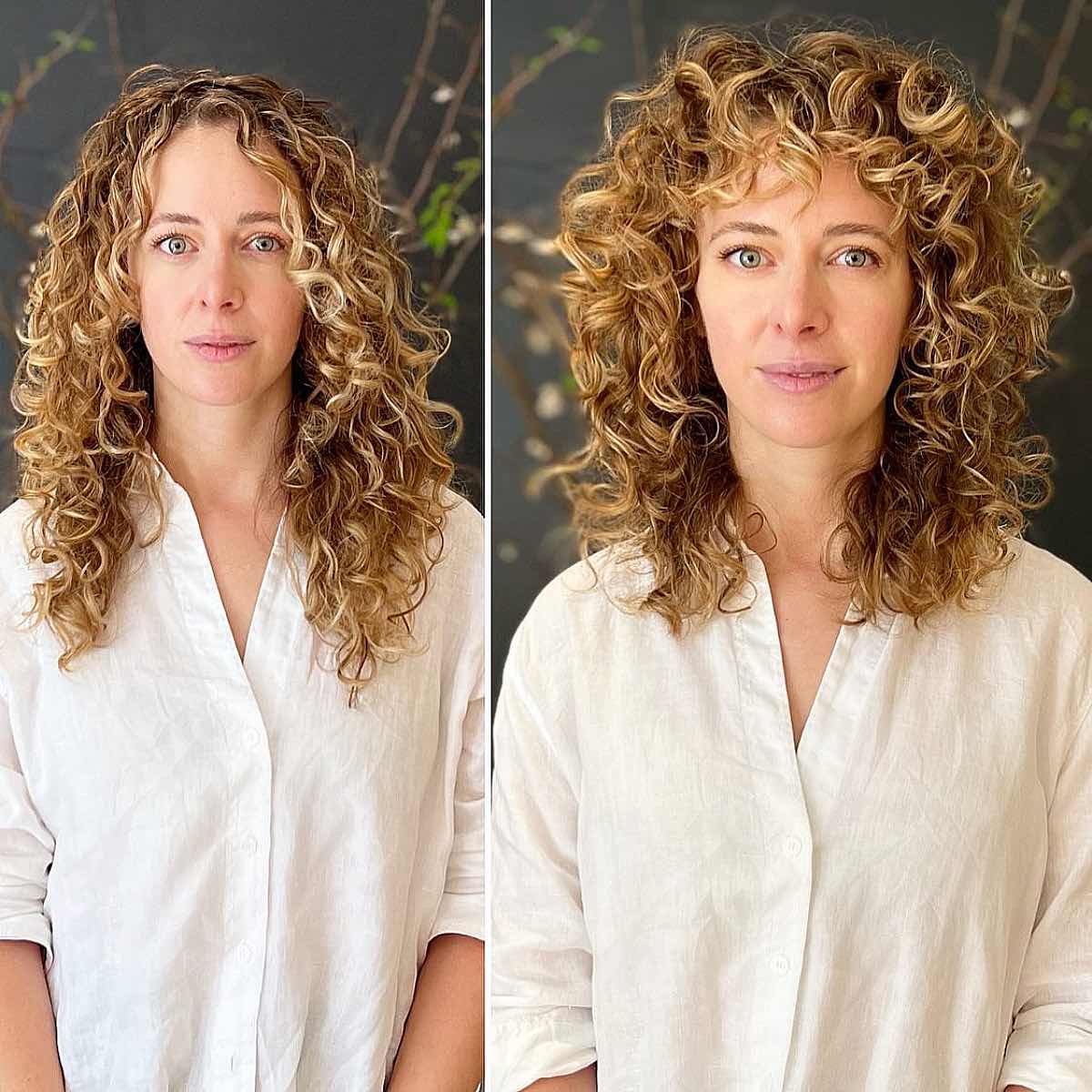 #11: Stylish Curly Hair with Bangs for Women 40 and Beyond