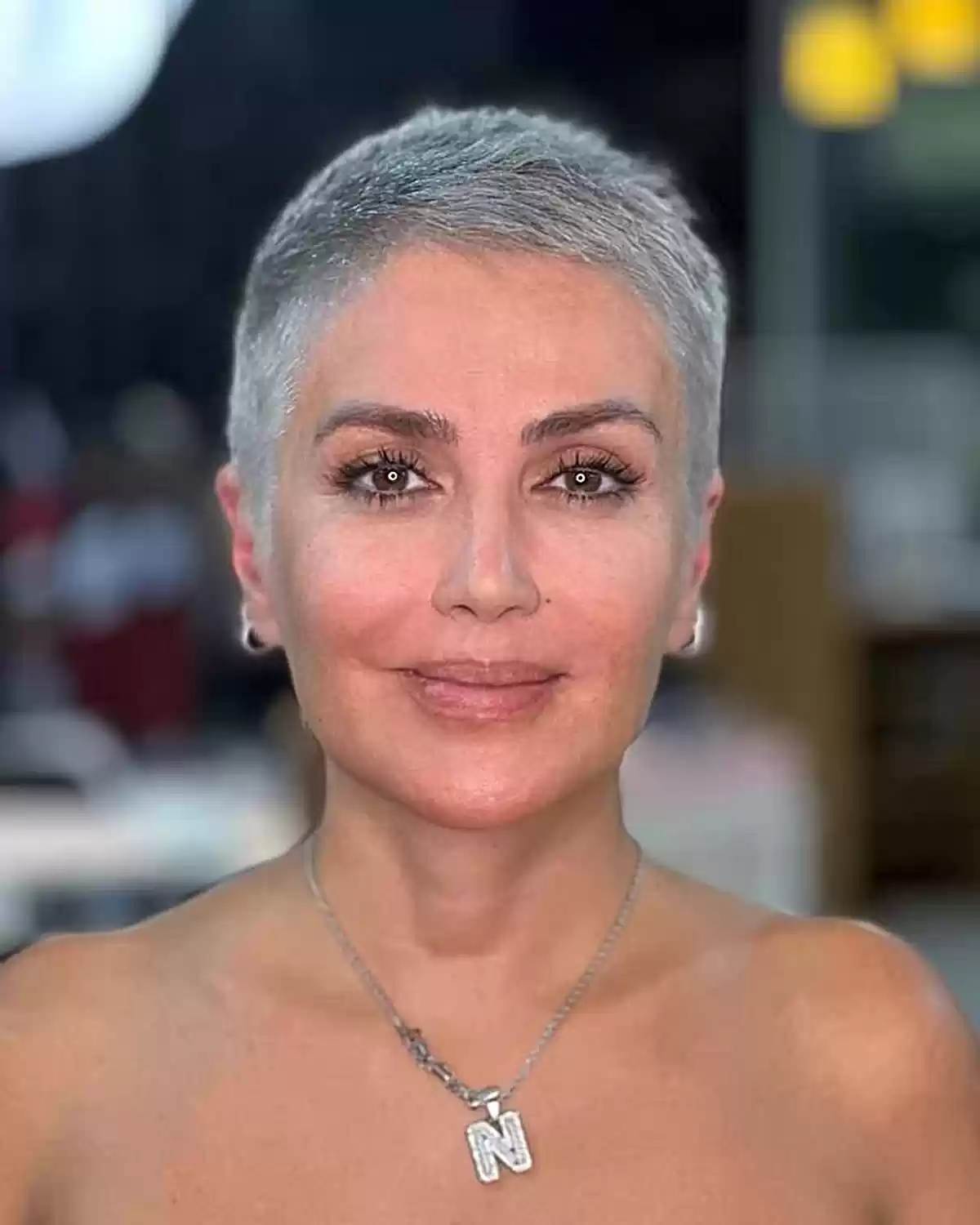 A shimmering silver pixie cut will look stunning on any woman. This short hairstyle reduces drying and styling time.