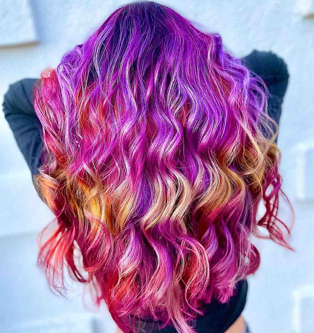 This enchanting galaxy hair artfully combines vibrant colors from roots to tips!