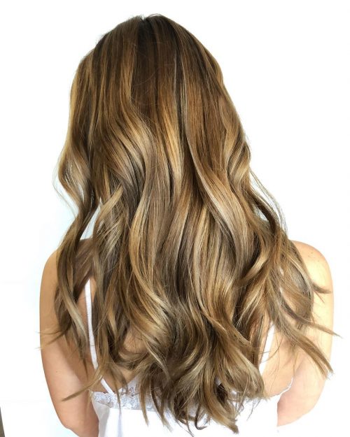 Choose dark hair with butterscotch balayage! The way the waves and color blend gently together is incredibly stylish! When it comes to upkeep, think about your morning routine. It won’t appear the same if you don’t do much to your hair and it has an extra curl. You would need to style it consistently to achieve this look.
