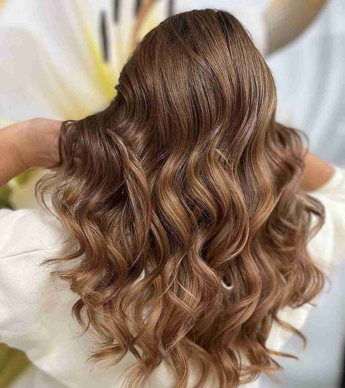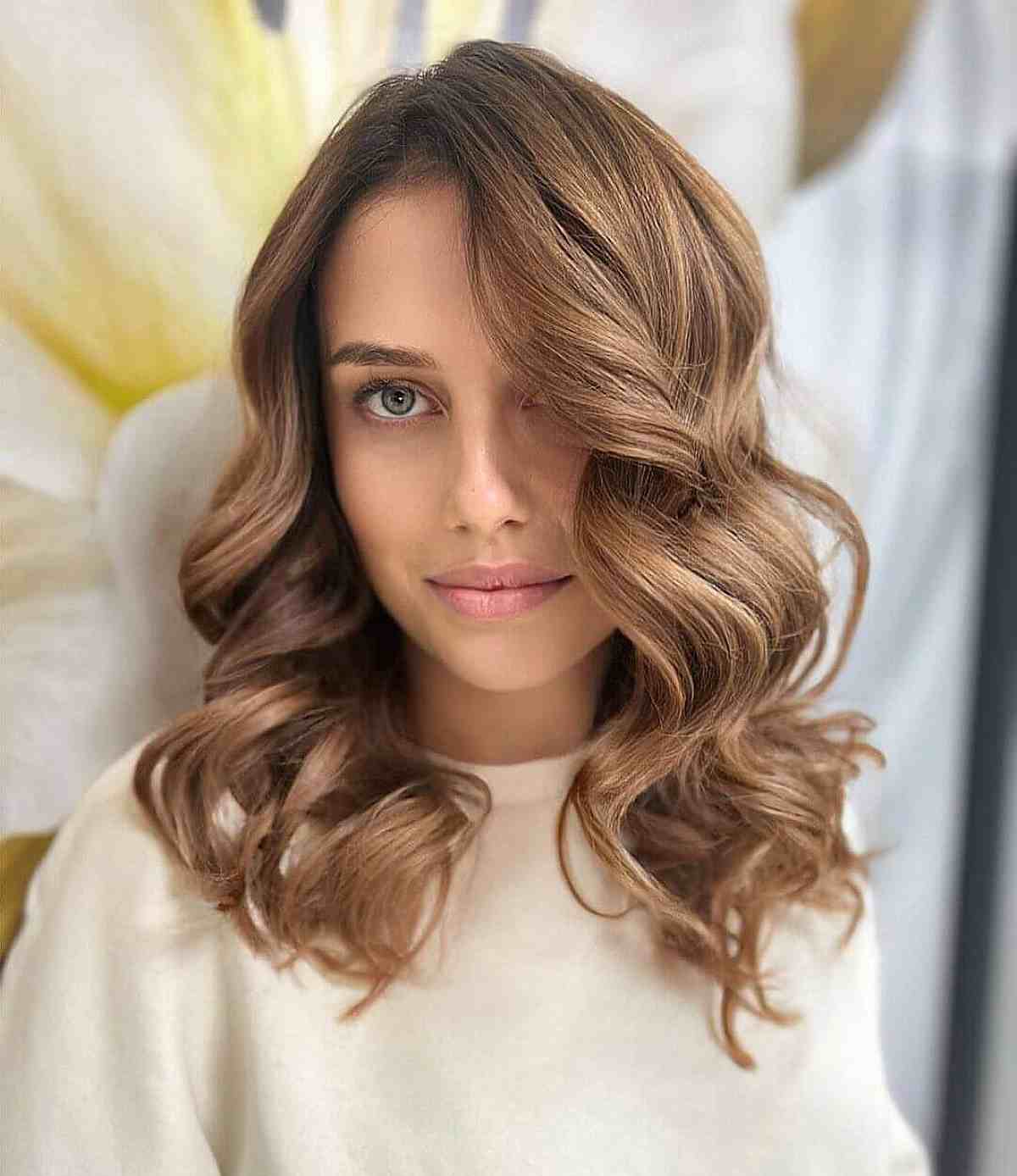 If you’re seeking a timeless option, my favorite is a rich caramel balayage with soft curls. The color consistently appears natural and transitions beautifully. Particularly for natural dirty blonde to light brown hair. Keep in mind caramel shades tend to fade more rapidly. I suggest scheduling your next appointment for a color glaze approximately 4 weeks in advance. Always utilize professional color care shampoo and conditioner between salon visits. It will not only prolong the vibrancy of your color but also keep your chemically treated hair vibrant and healthy.