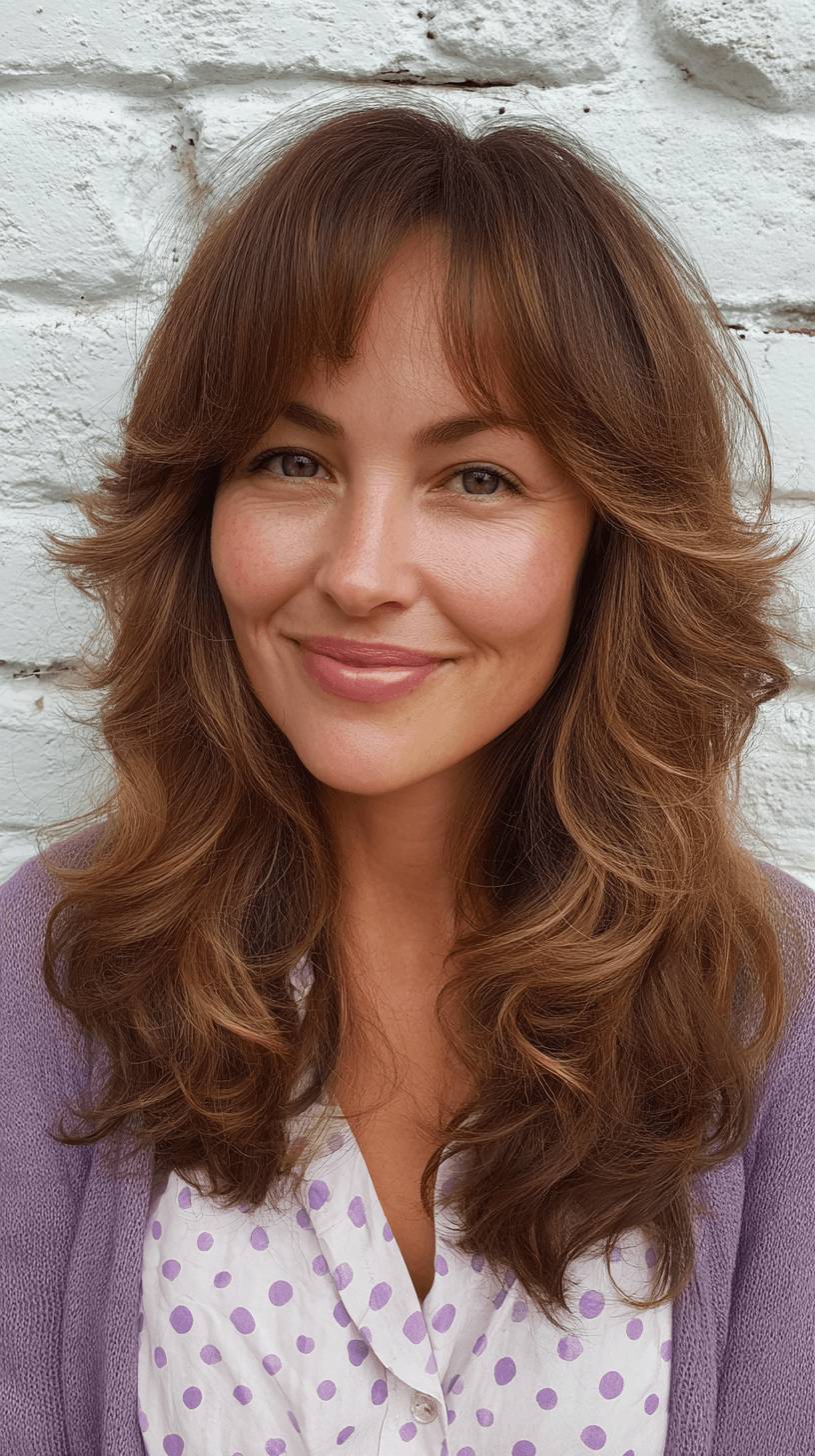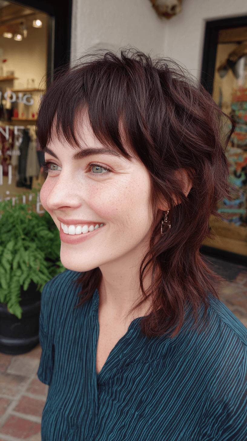 This choppy layered mullet is a fantastic choice for those looking to add texture and movement to their hair. The soft bangs frame the face beautifully while the layered back creates a playful, modern look. This style works well for medium to thick hair and suits oval or heart-shaped faces. One unique aspect is how the layers are cut to enhance natural waves, making styling effortless. However, keep in mind that maintenance may require regular trims to keep the shape intact.