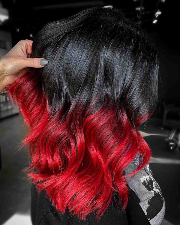 Red and black hair styles involve coloring black hair with red, revealing some of the original black strands. The most popular methods to tint black hair red include highlights, ombres, and balayage. This color style serves as an innovative approach to transforming a standard black mane. Women everywhere embrace this contemporary color pairing to achieve a romantic, dramatic look that adds significant depth and dimension.
