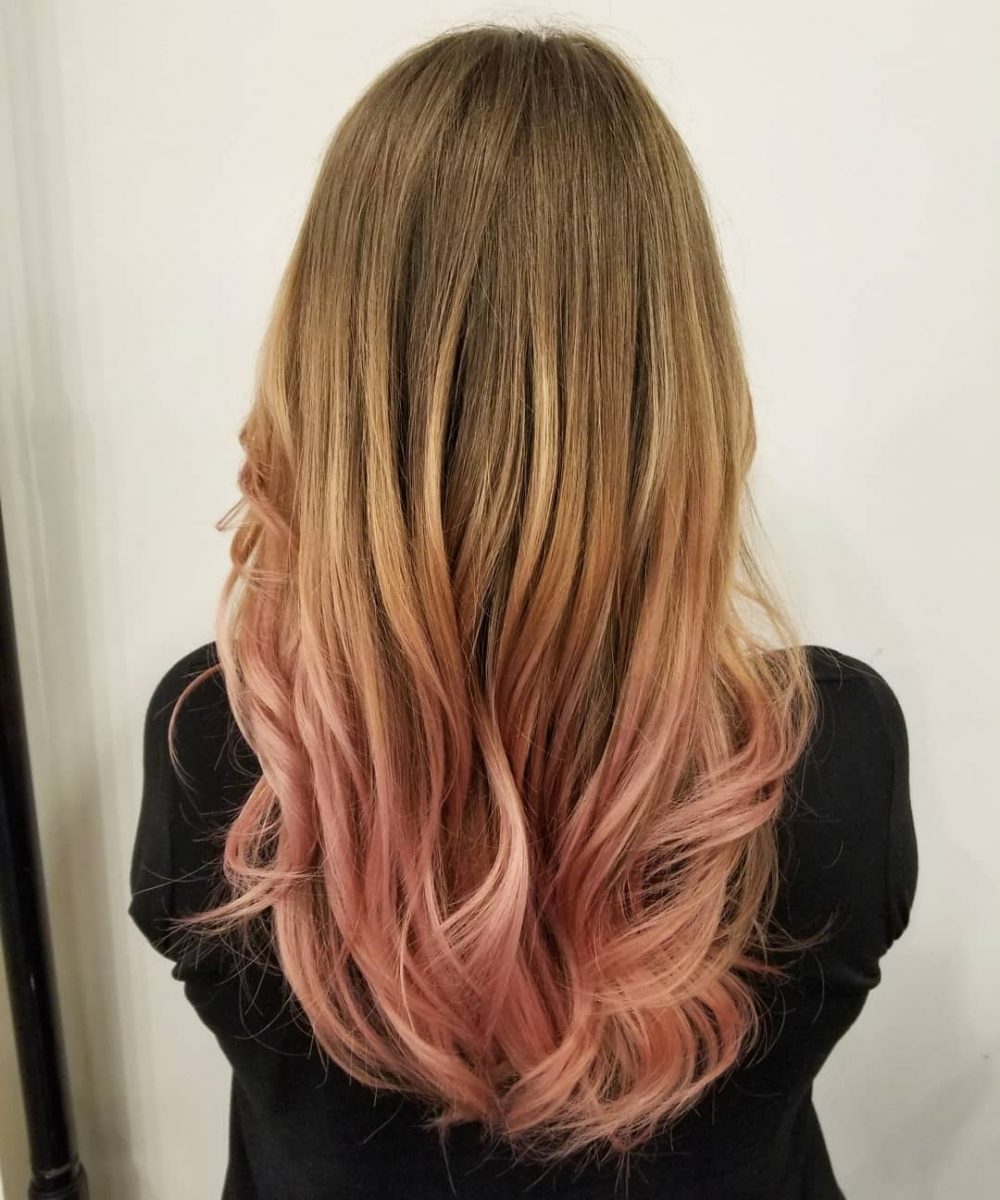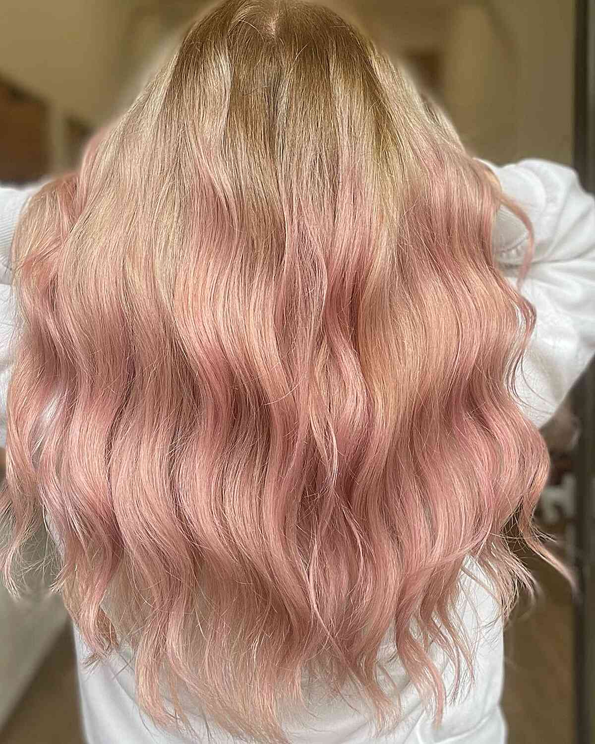 If you’re a blonde seeking a striking transformation, this lively blend of pink and rose gold tones is an ideal option!