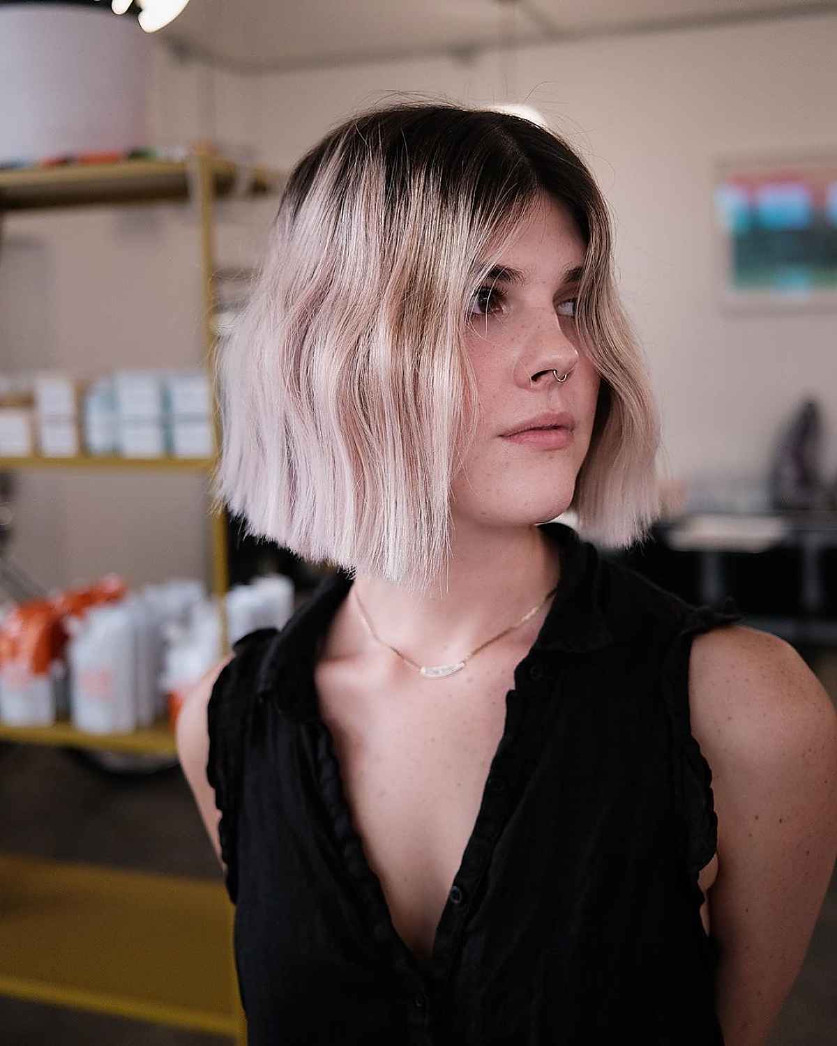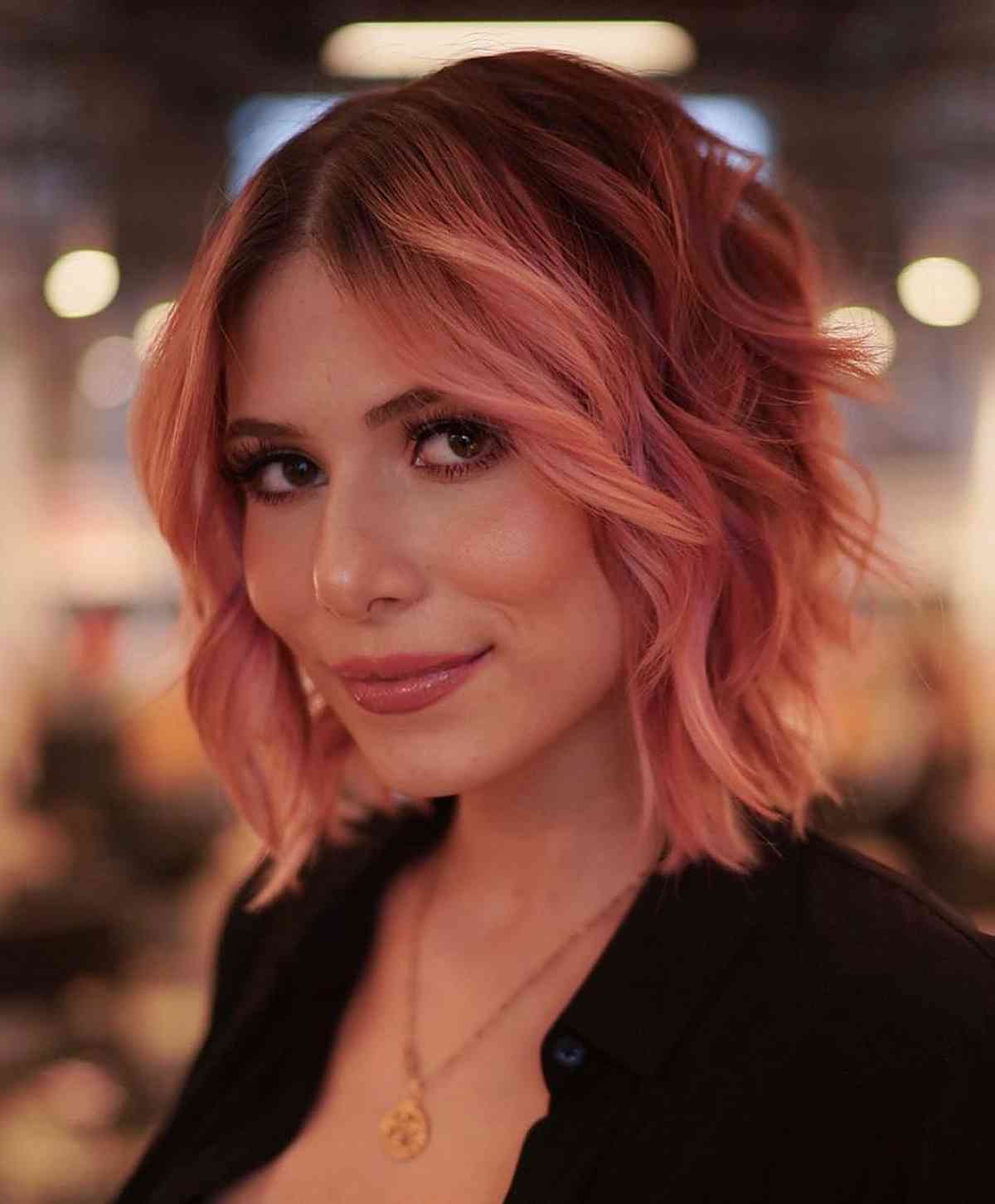 A lived-in bob is incredibly charming when colored rose gold. This shade is ideal for individuals with fair skin and light eyes, as well as those with natural red undertones in their hair. To achieve this stunning look, you should already have very light hair, or you will need to lighten it with bleach initially. Don’t forget to request that your colorist incorporates Olaplex during the lightening process. It will help maintain your hair’s health and preserve this beautiful peach hue.