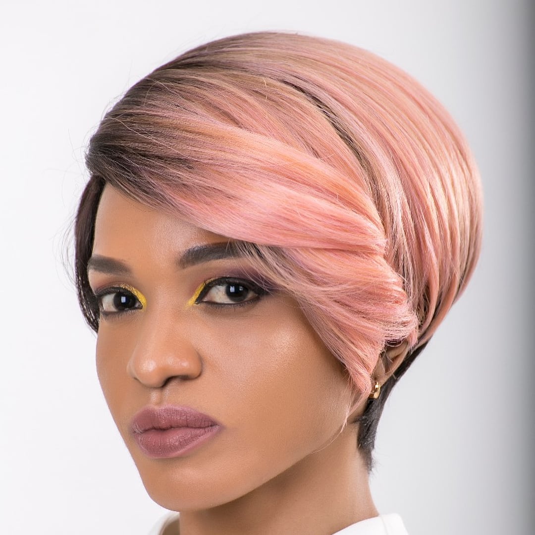 “I adore this wig for its soft rose gold shades, and it offers a volume that’s incredibly easy to manage,” remarks fashion stylist Missi of Kenya.