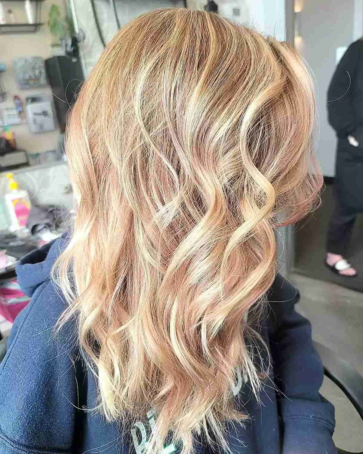 #42: Stunning Waves with Layered Rose Gold Highlights