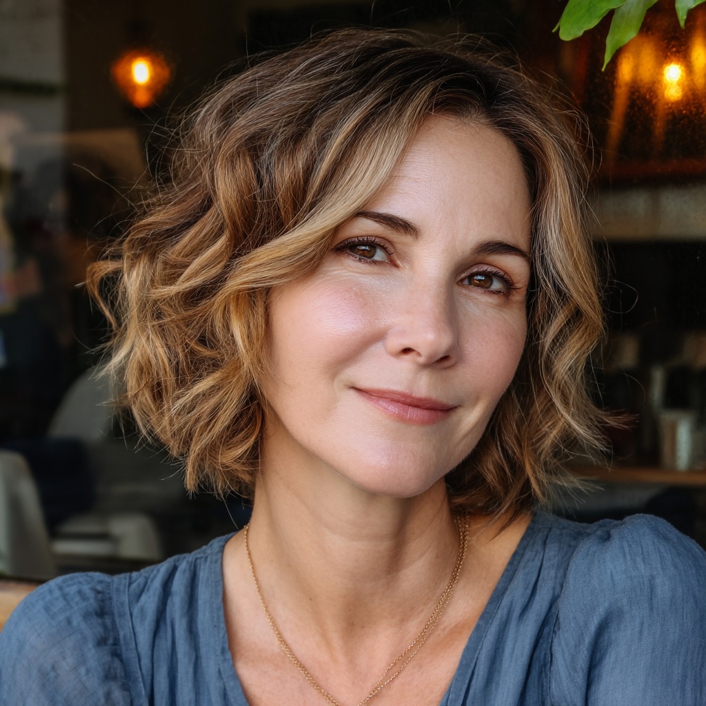 #16 Softly Tousled Wavy Cut with Natural Highlights