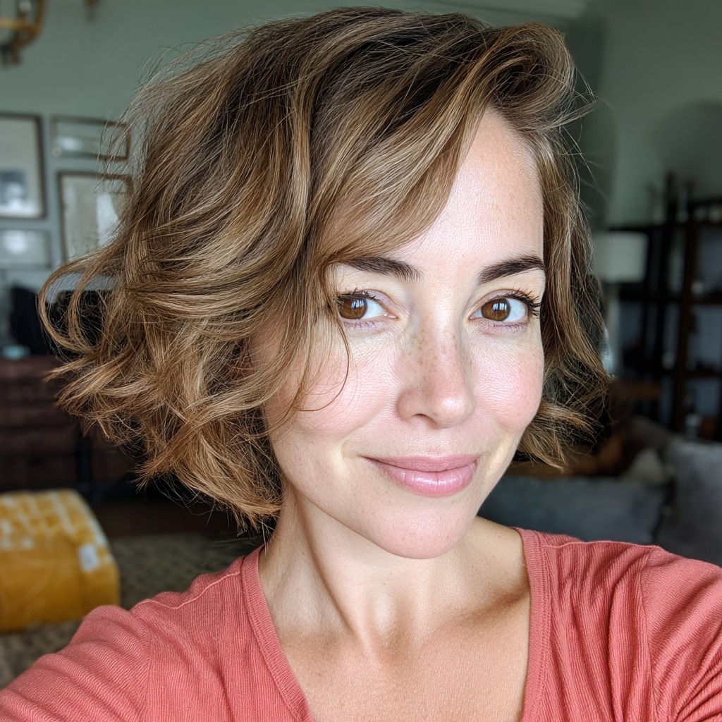 #8 Textured Wavy Short Bob with Subtle Highlights