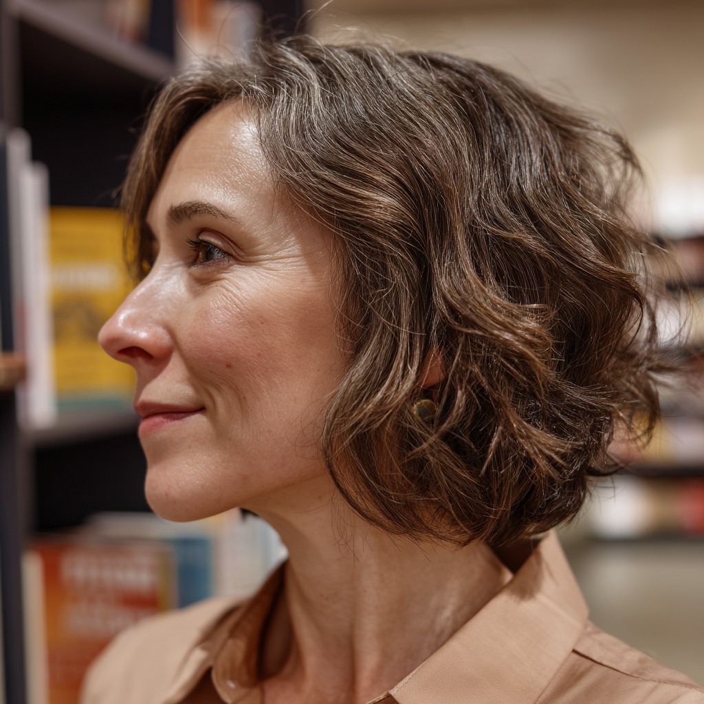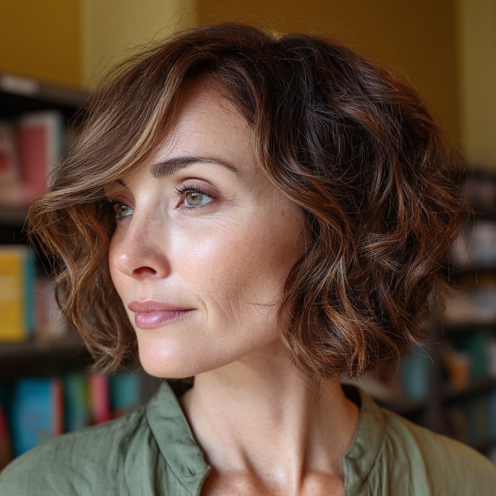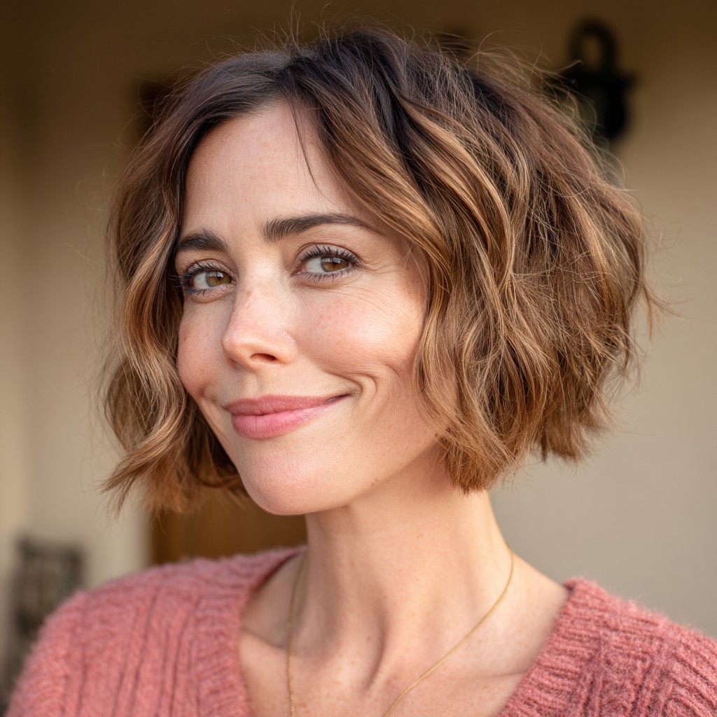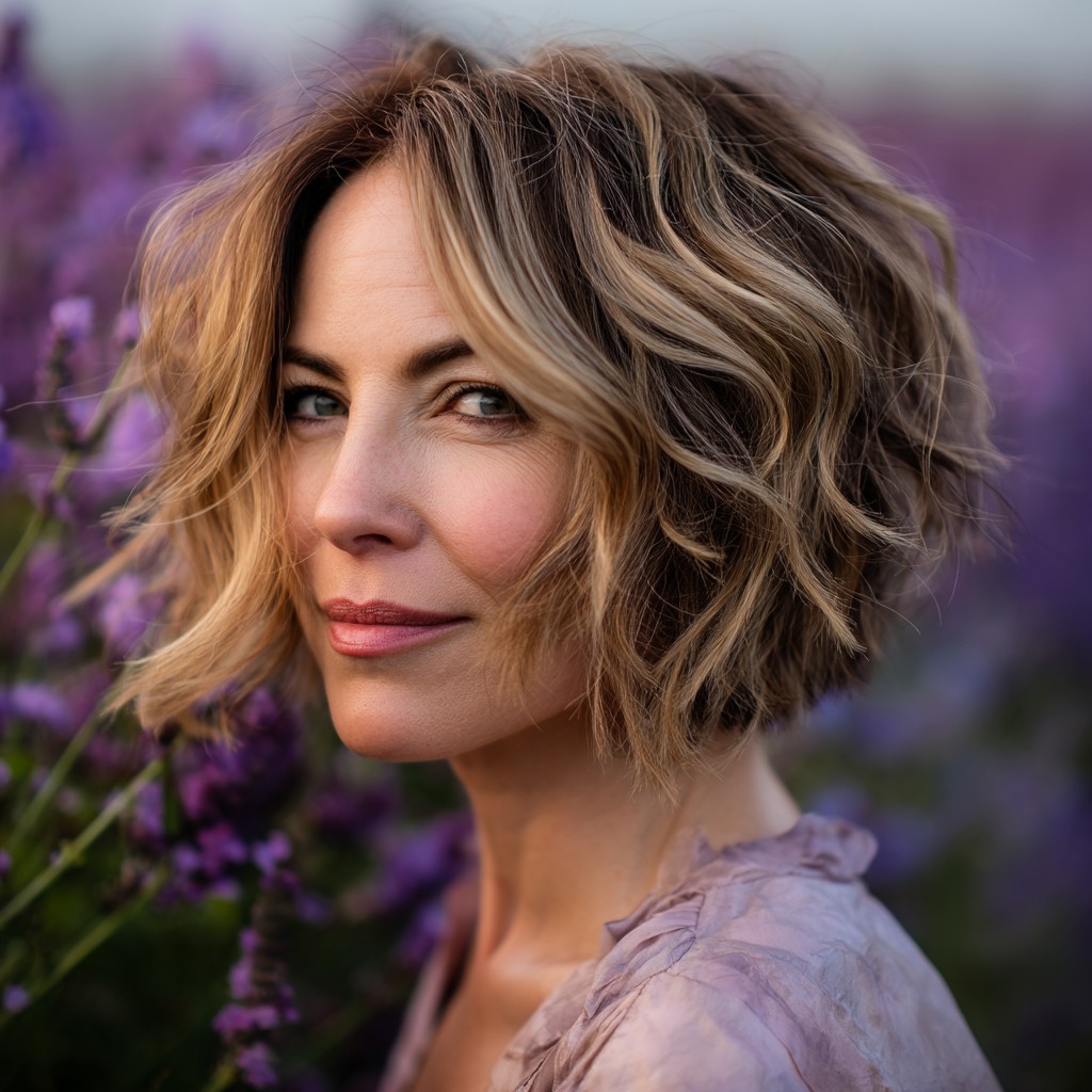 #19 Chic Tousled Wavy Bob with Subtle Highlights