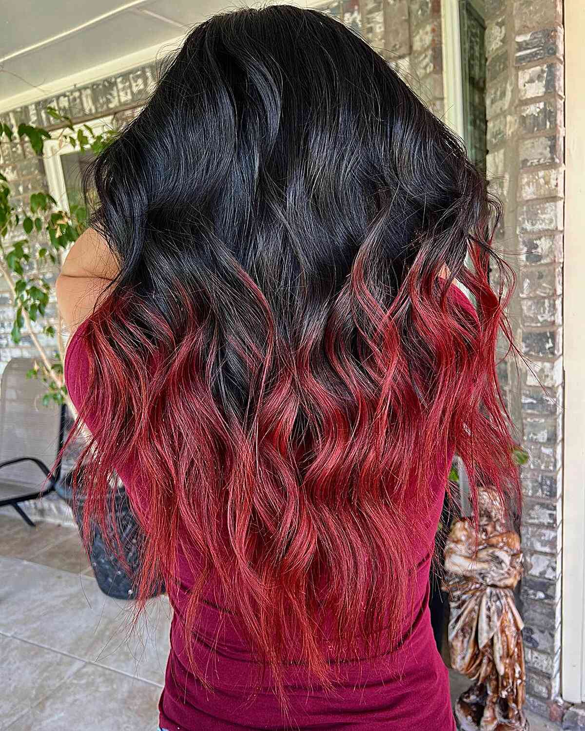 #34: Dark Black Roots Transitioning to Vibrant Red Ombre Hair