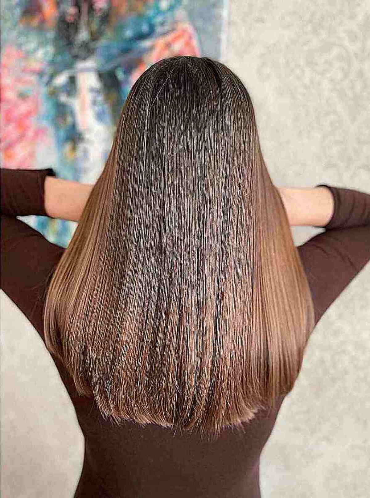 For women seeking a vibrant change with minimal upkeep, this long ombre hairstyle is ideal. What sets this particular long brown ombre apart is its stunning shine and low maintenance requirements. This color flatters all skin tones, especially adding warmth to fair complexions and a sophisticated glow to those with olive skin. If you’re contemplating a transformation, this long ombre is an excellent choice.