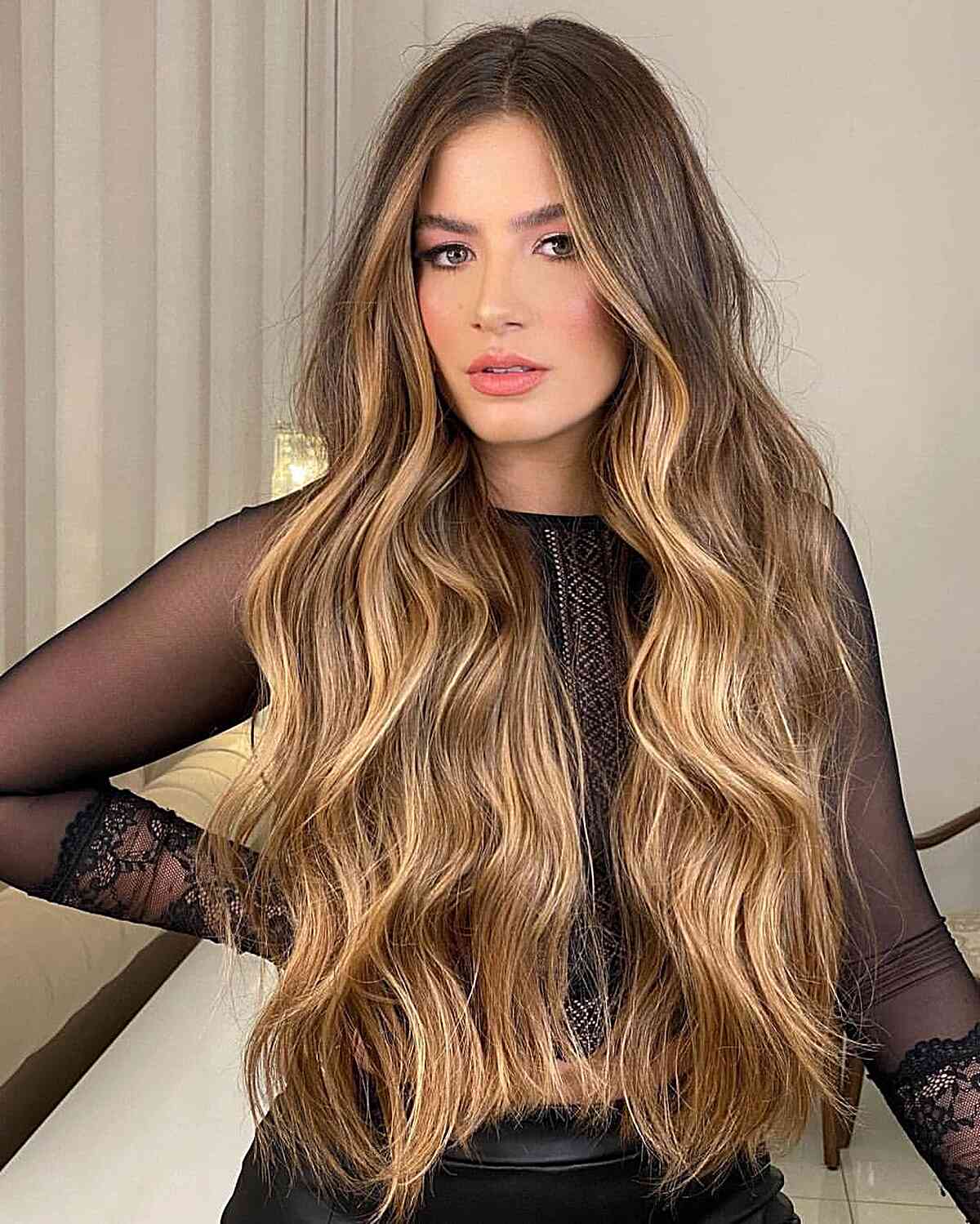 Consider an extra long caramel ombre if you’re looking for a low-maintenance, naturally beautiful hue. This color is an excellent choice for those with a warmer skin tone. Make sure to ask your stylist to include a front money piece to enhance your facial features!