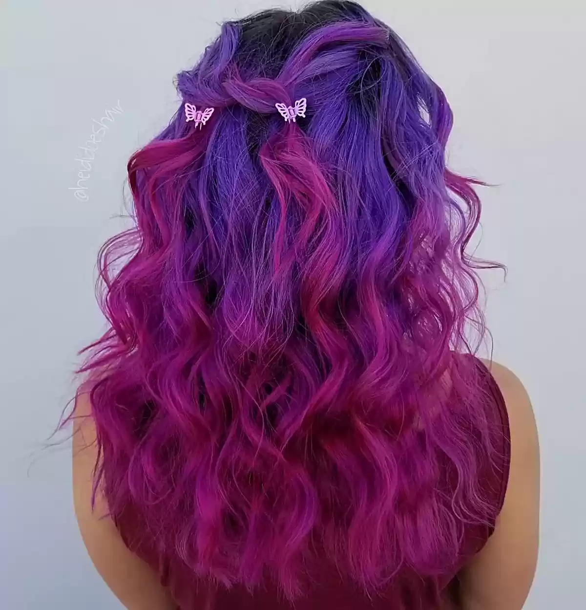 This ombre features a rich cherry red, blending red with cool tones for an overall “berry” hue. If you’re aiming for this color combination, ensure you’re someone who regularly maintains their color. Wash it with cold water and sulfate-free shampoo to keep it as fresh and vibrant as possible.