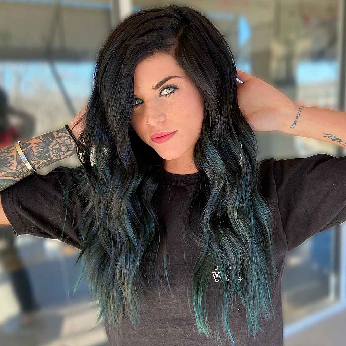 Consider experimenting with a long ombré that transitions from black to emerald green for a daring look without fully committing to a vibrant color. An ombré style offers an excellent opportunity to dip into bold fashion hues while maintaining minimal commitment in terms of hair placement.