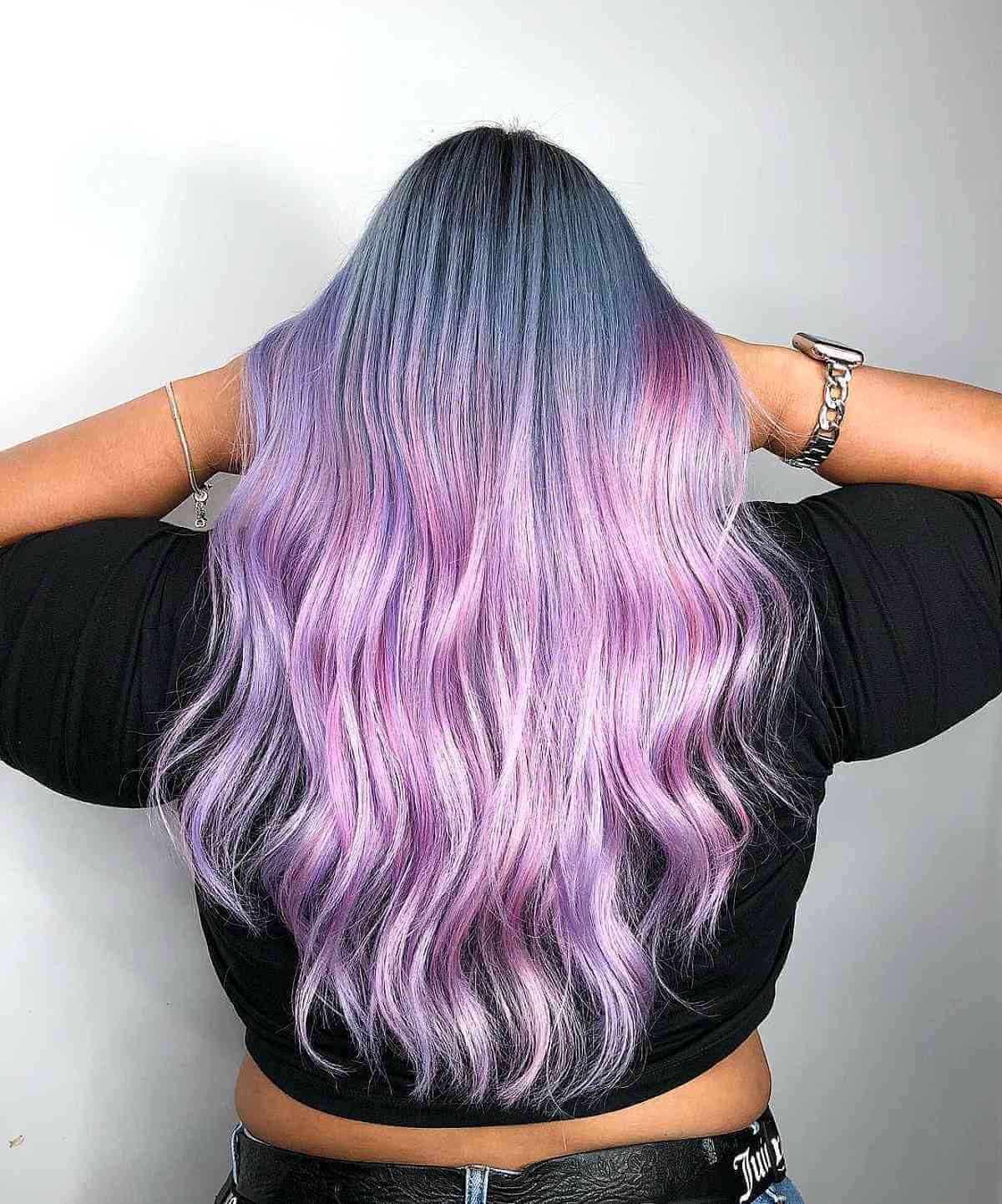 If you are thinking about this ombre shade for long tresses, blending your natural color into the roots results in a lovely grow-out. Furthermore, violet-based hues offer an excellent solution for women seeking a smooth fade with vibrant color. It will ultimately transition to a beautiful blonde/soft lavender.