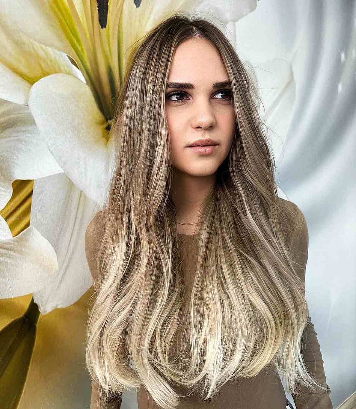 #25: Natural Long Light Brown to Cool Blonde Ombre Hair