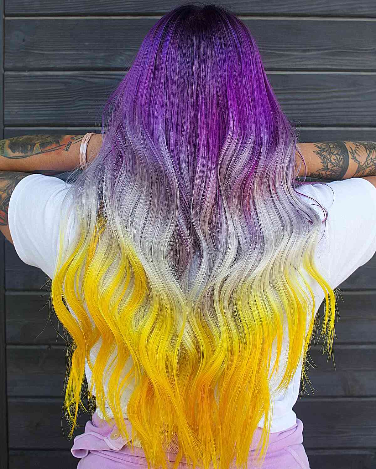 Your hair may seem lackluster. Exploring long ombre styles can lead you through a striking transformation from purple to white to yellow. The interplay between these vibrant shades introduces a fun twist to your look. This ombre style is perfect for those eager to make a daring hair statement and enjoy experimenting with distinctive color pairings. The progression from purple to white to yellow produces a breathtaking visual appeal. Feel free to customize it to suit your individual style. It’s essential to use high-quality hair care products for color-treated hair to keep the colors lively. Regular maintenance can ensure the ombre remains fresh and dynamic.