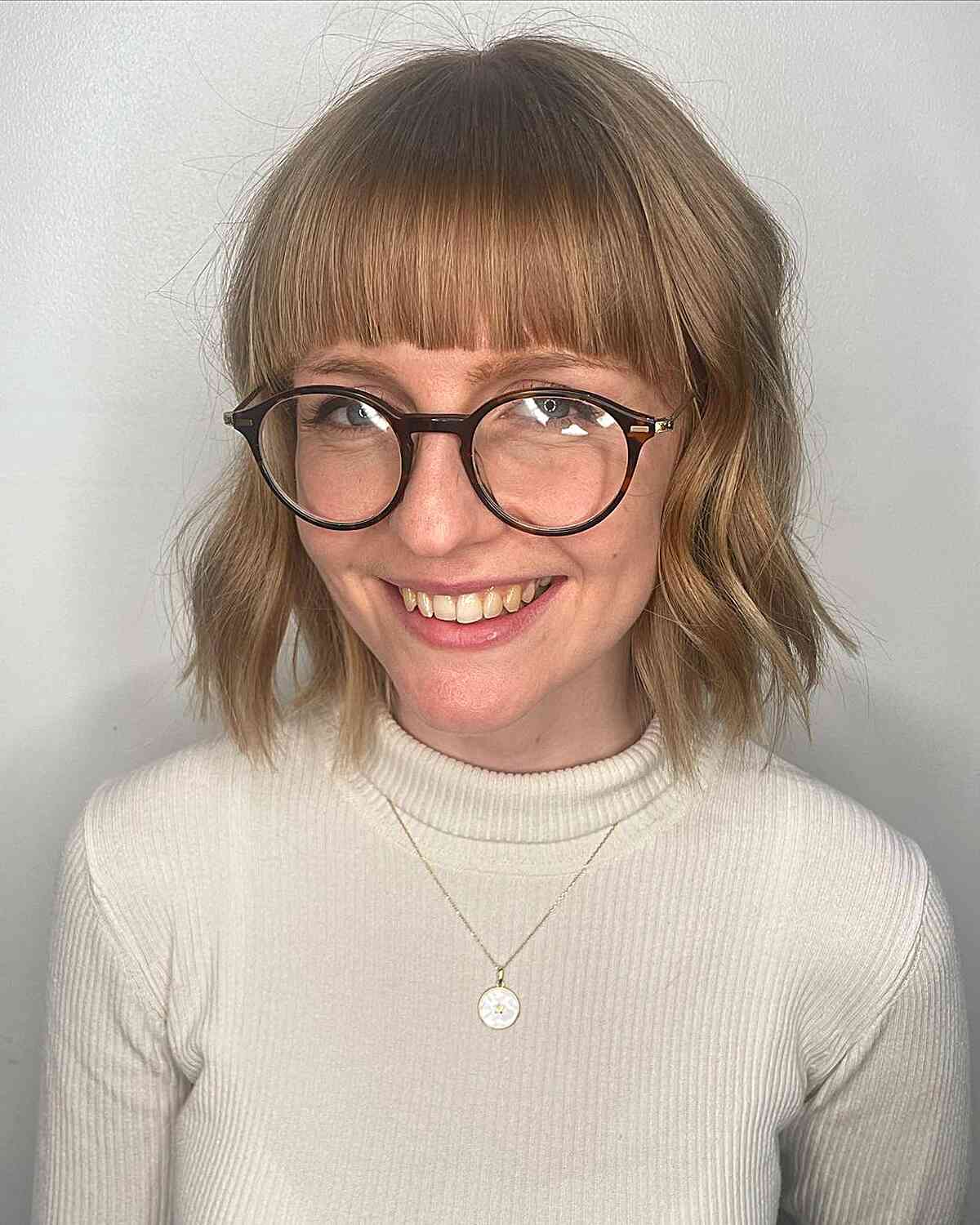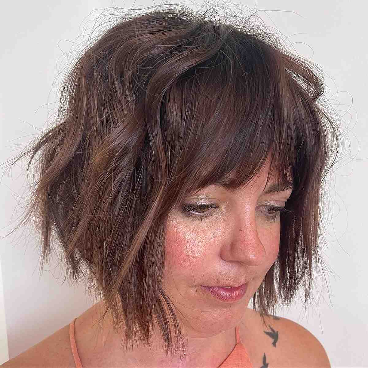 #21: Effortless Neck-Length Cut Featuring Choppy Bangs