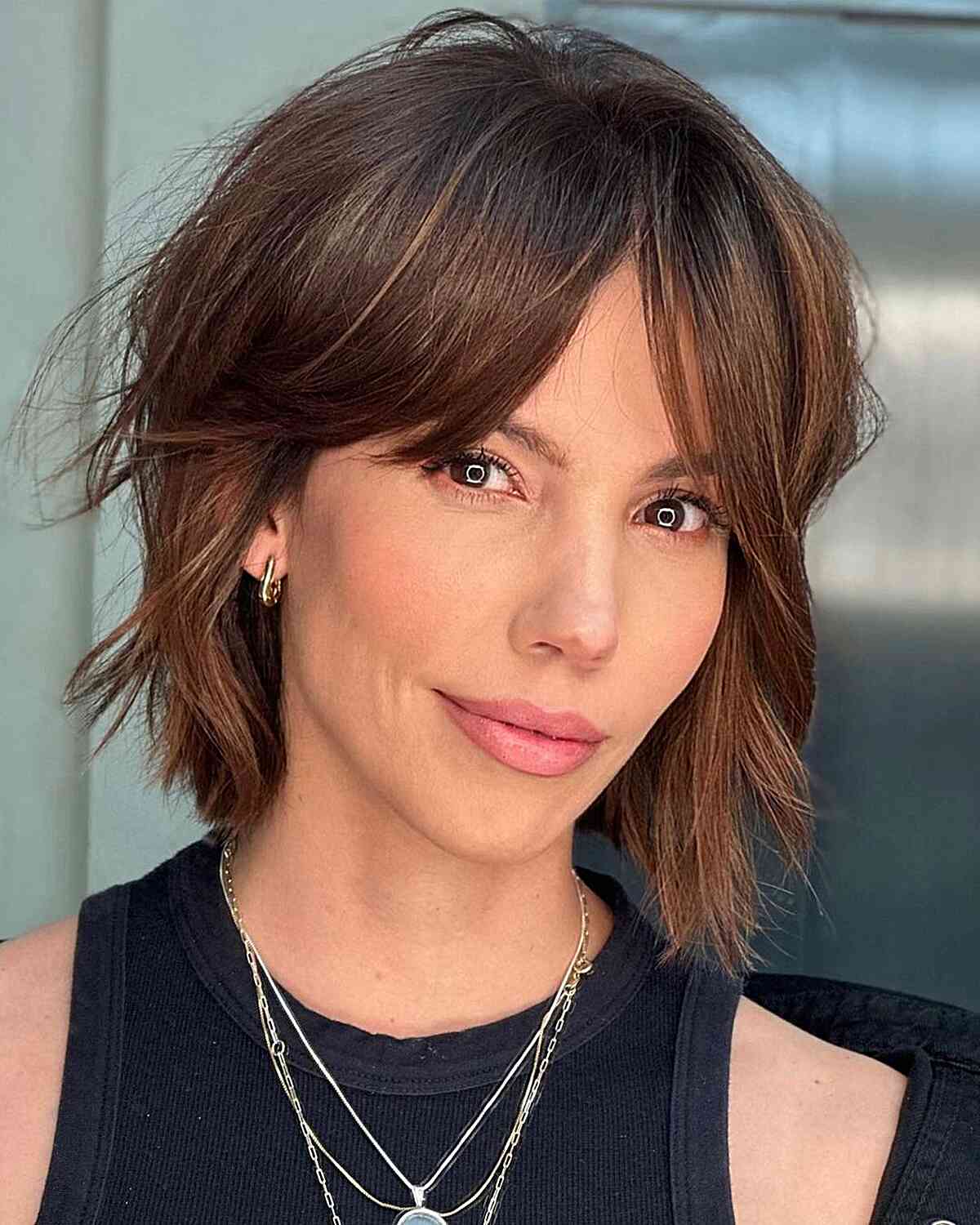 Transform your look with captivating face-framing long bangs. To achieve a flattering outline, ask your stylist to cut your bob to lip length. Choose subtle layering throughout, which will impart movement and softness. You’ll stay on trend with bangs that sweep your eyes and impart an air of mystery.
