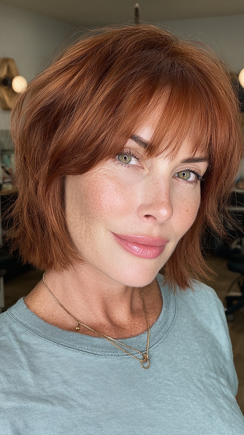 #11 Vibrant Copper Textured Bob with Feathered Layers