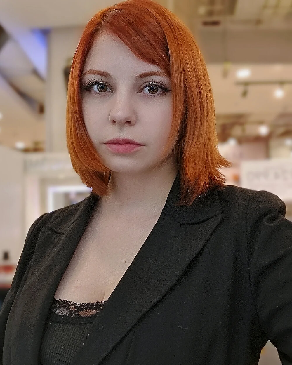 This vibrant, wavy short haircut features tousled layers that create a voluminous and airy feel, perfect for round faces. The warm copper-red hue brightens the complexion and adds personality, while the soft waves frame the cheeks and slim the jawline. This cut works best for medium-density hair and is a fantastic option for women of all ages seeking a bold yet effortless look.