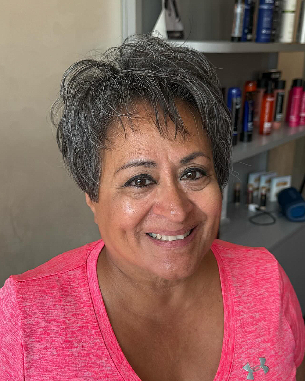 As we age, we want to spend less and less time styling our hair. A pixie is a great way to express your sassiness while keeping your at-home maintenance low. Ask about products that will make your fine hair look the fullest and most voluminous.