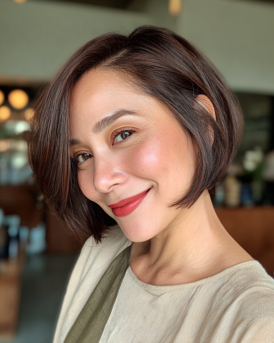 #2 Sleek Bob with Subtle Layering and Rich Chestnut Color