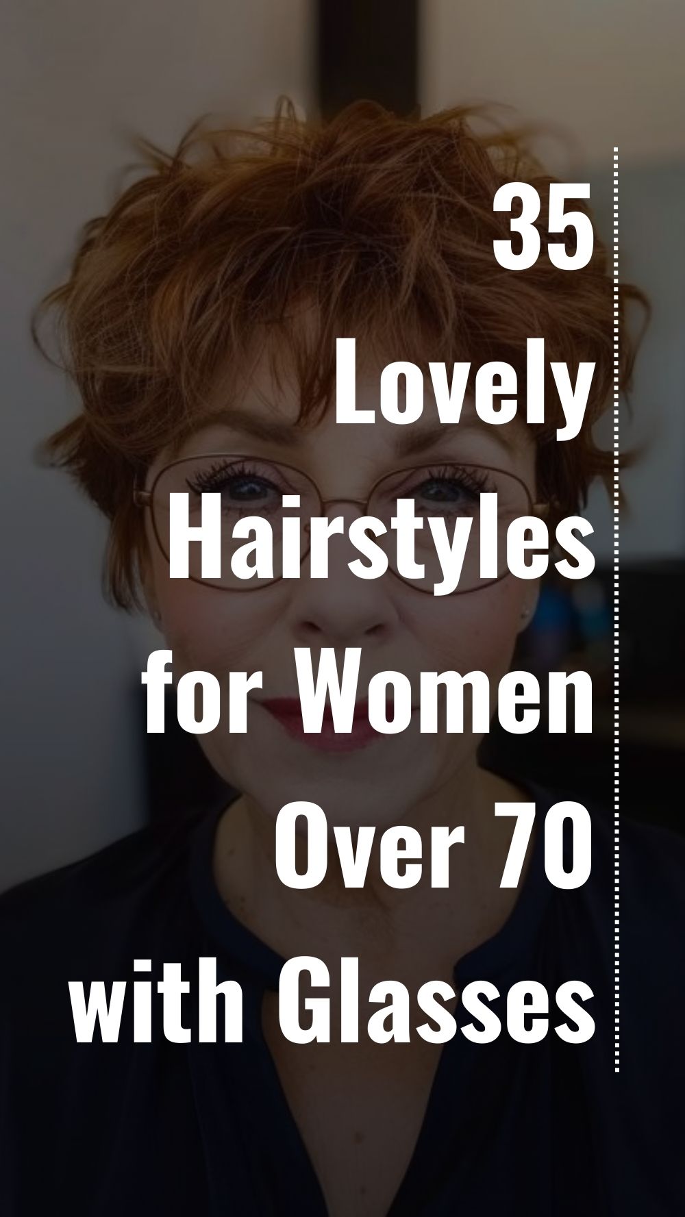 Ask about a cute short and messy cut with natural color. For women in their 70s with glasses, a cut that is easy to maintain and stays out of your eyes is a must. Wear your hair swept to the side to keep it out of your face, and try an asymmetrical bang for a soft effect around the eyes.